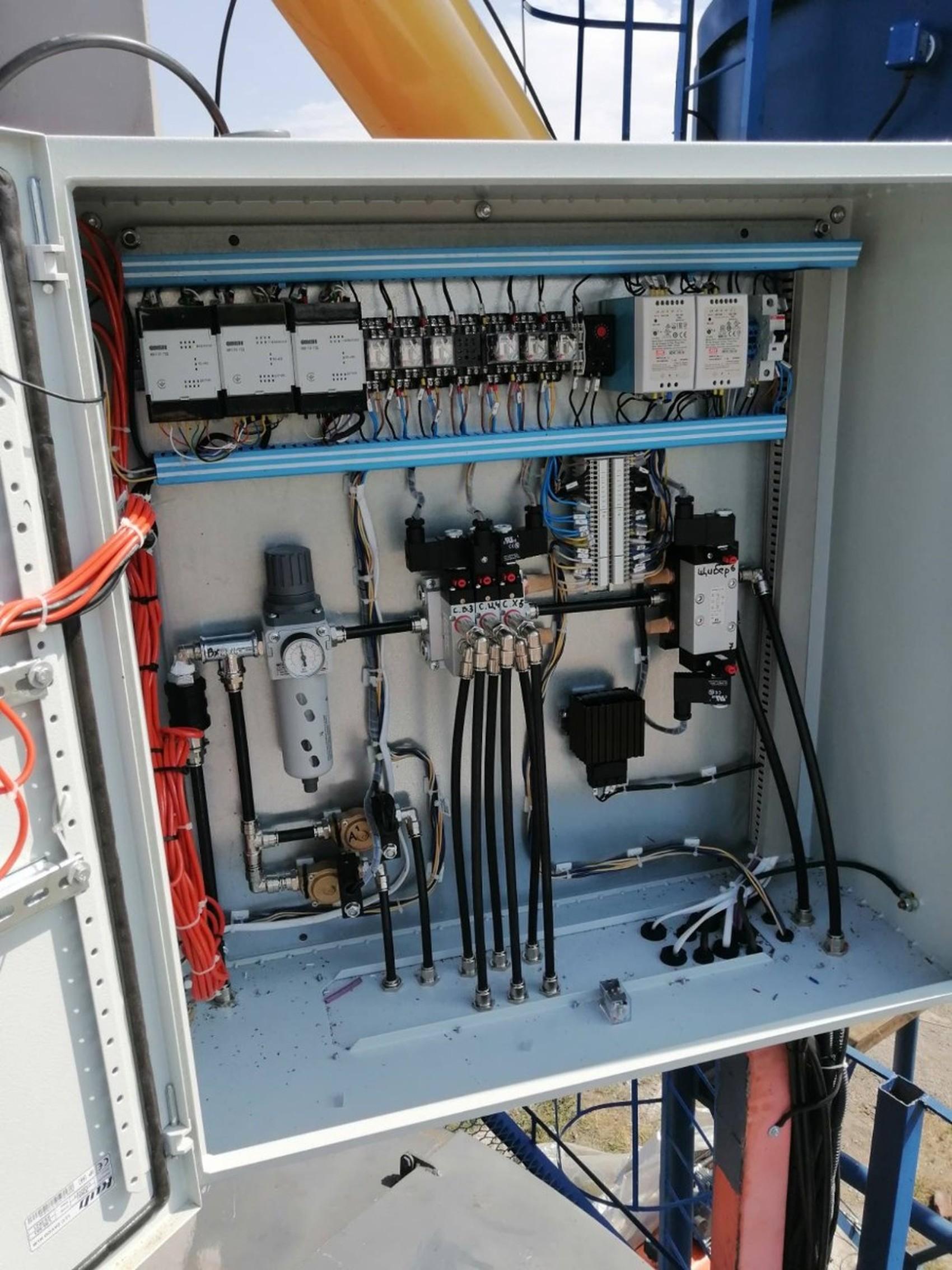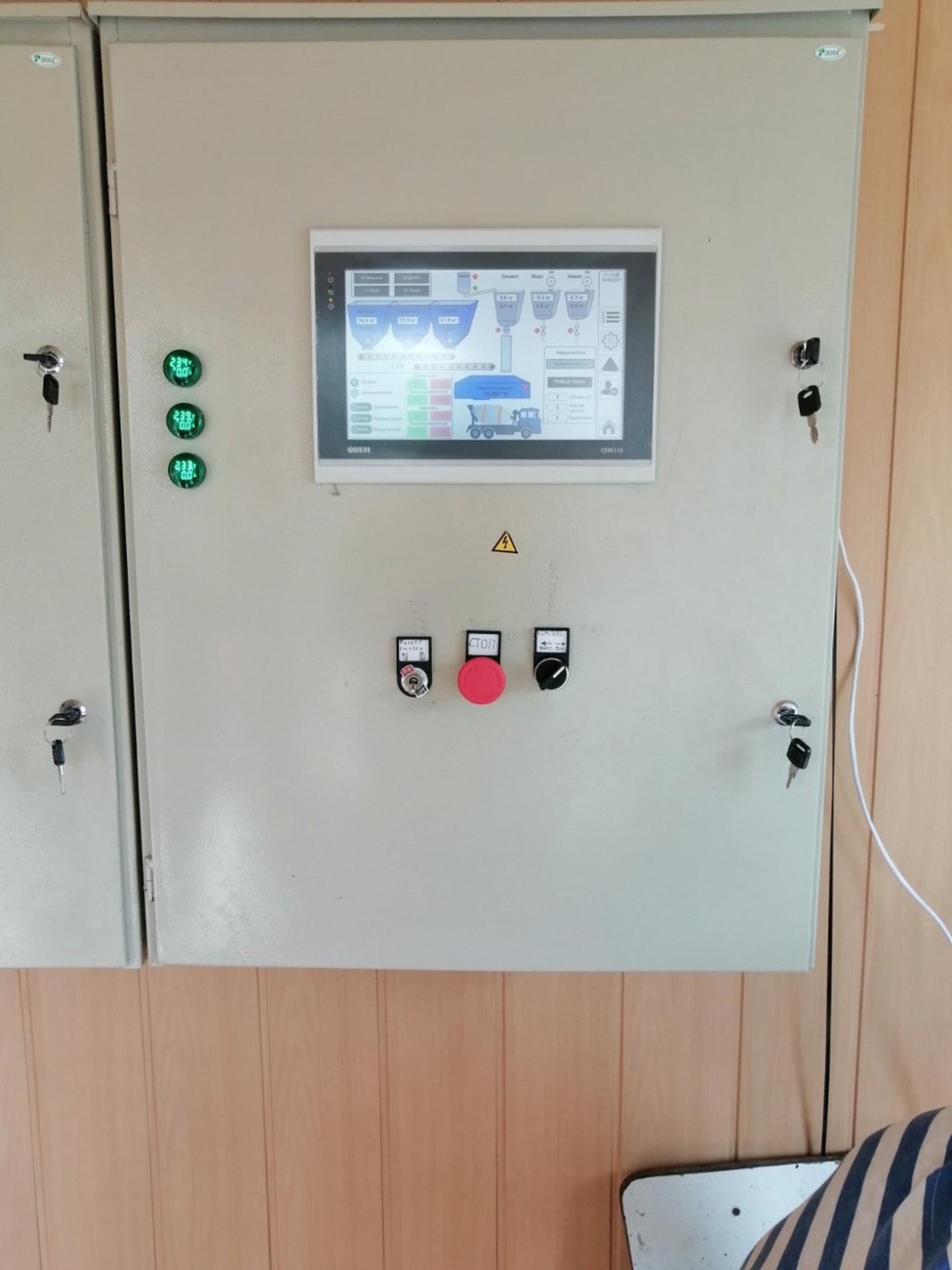 The control system consists of three main subsystems: weight dosing; supply and preparation of ready concrete; archiving (recording of materials, release of finished products, actions of system users, and emergency events). It is possible to start the mechanisms remotely, provided there is a Wi-Fi network.