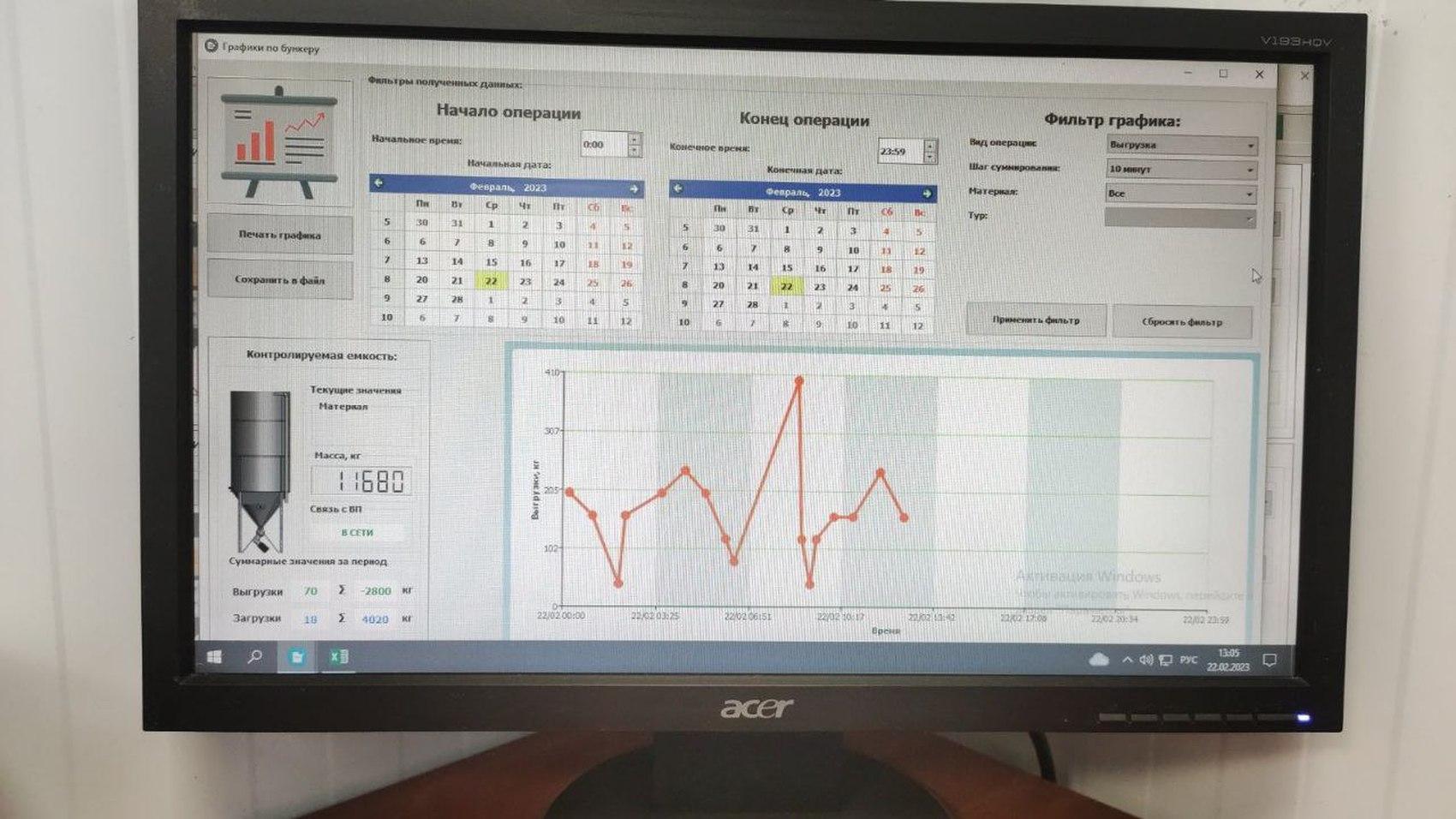 To implement the project, a scheme for installing and connecting weighing equipment was developed. As a result, all hoppers were connected to the same software to display the current weight and record the arrival/expenditure of bird feed.